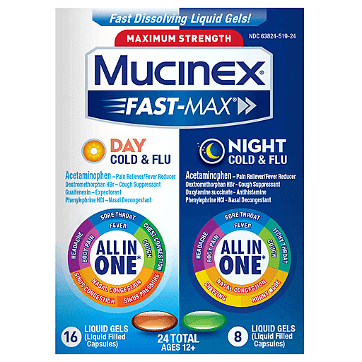 Mucinex Liquid Gels Maximum Strength Day Night Cold & Flu Value Pack 24 Ea