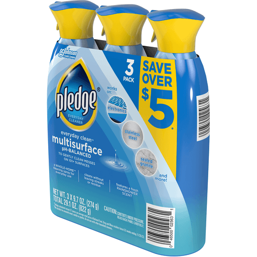 Pledge® Multisurface Cleaner, Everyday Clean™, Aerosol, Rainshower Scent, 9.7 Oz, Pack Of 3